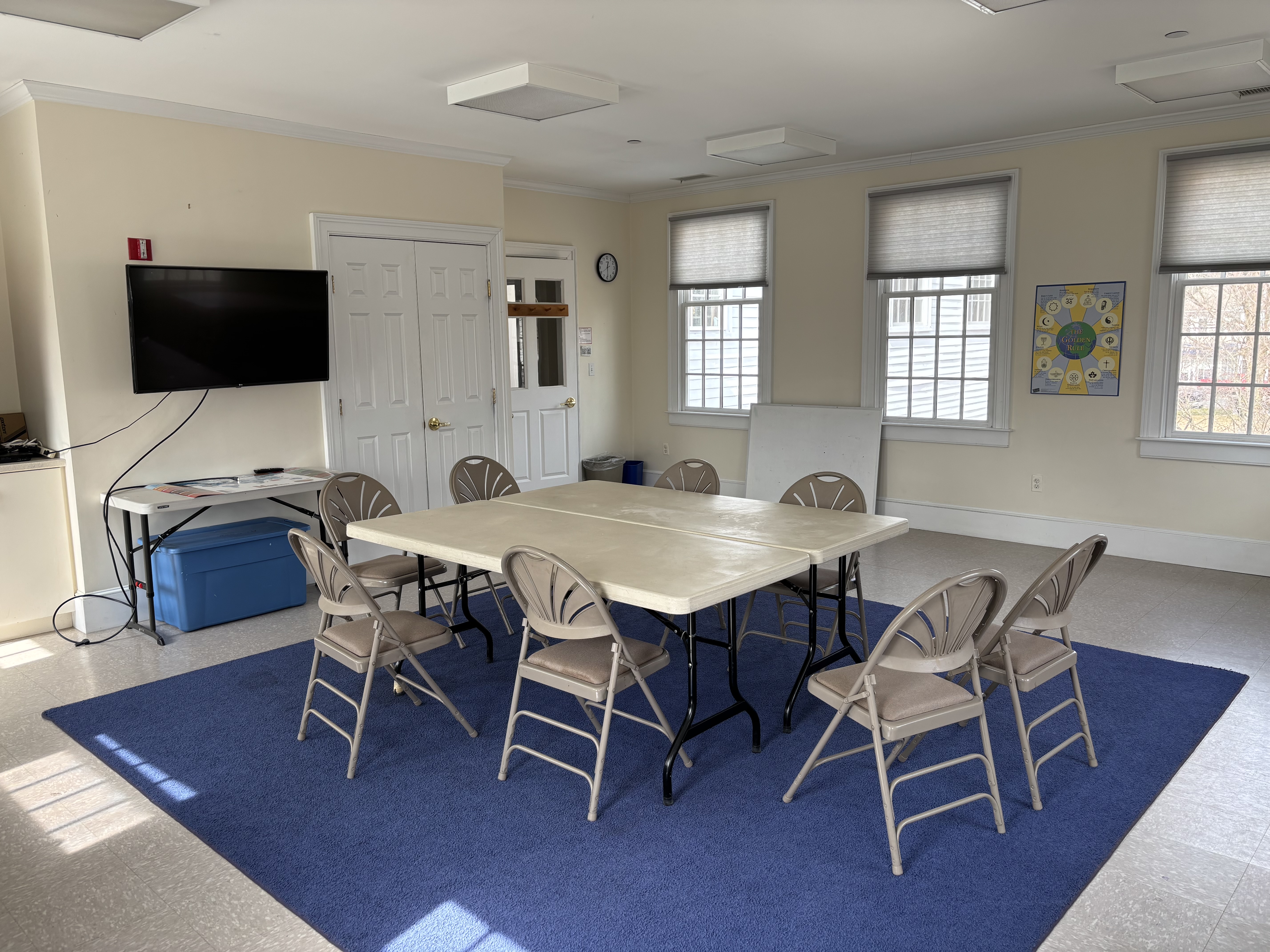 The Parsonage, where the Senior Minister lives, also hosts immigrant families. Currently, there is only a half bath on the first floor, so anyone with a disability who cannot climb a flight of stairs is also unable to reach the second-floor bathroom to shower. In addition, there is currently no door to separate the first-floor living room and an additional room, which limits the space’s use due to noise and lack of privacy. Upgrading the first-floor half bath to a three-quarters bath, which would include a shower that could accommodate individuals with disabilities, would improve accessibility. Installing double doors between the first-floor living room and the additional space would enable them to be used together or separately, creating more options for use of the spaces.